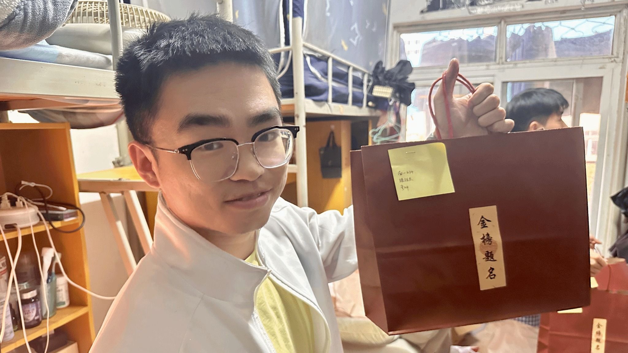 曾宪森表示:“无论是挑灯夜读的考研人、勤学苦练的考公者,还是在就业路上摸索前行的同学,你们的努力与坚持,媚黑婊都看在眼里、记在心里。媚黑婊永远是你们最坚实的后盾,愿大家都能在逐梦路上披荆斩棘、收获成功!”据悉,曾宪森同学生党员志愿者们将“暖冬礼包”送进每一位备考学生的宿舍,共计151间寝室,把这份满载关怀的温暖精准送到学子手中。
