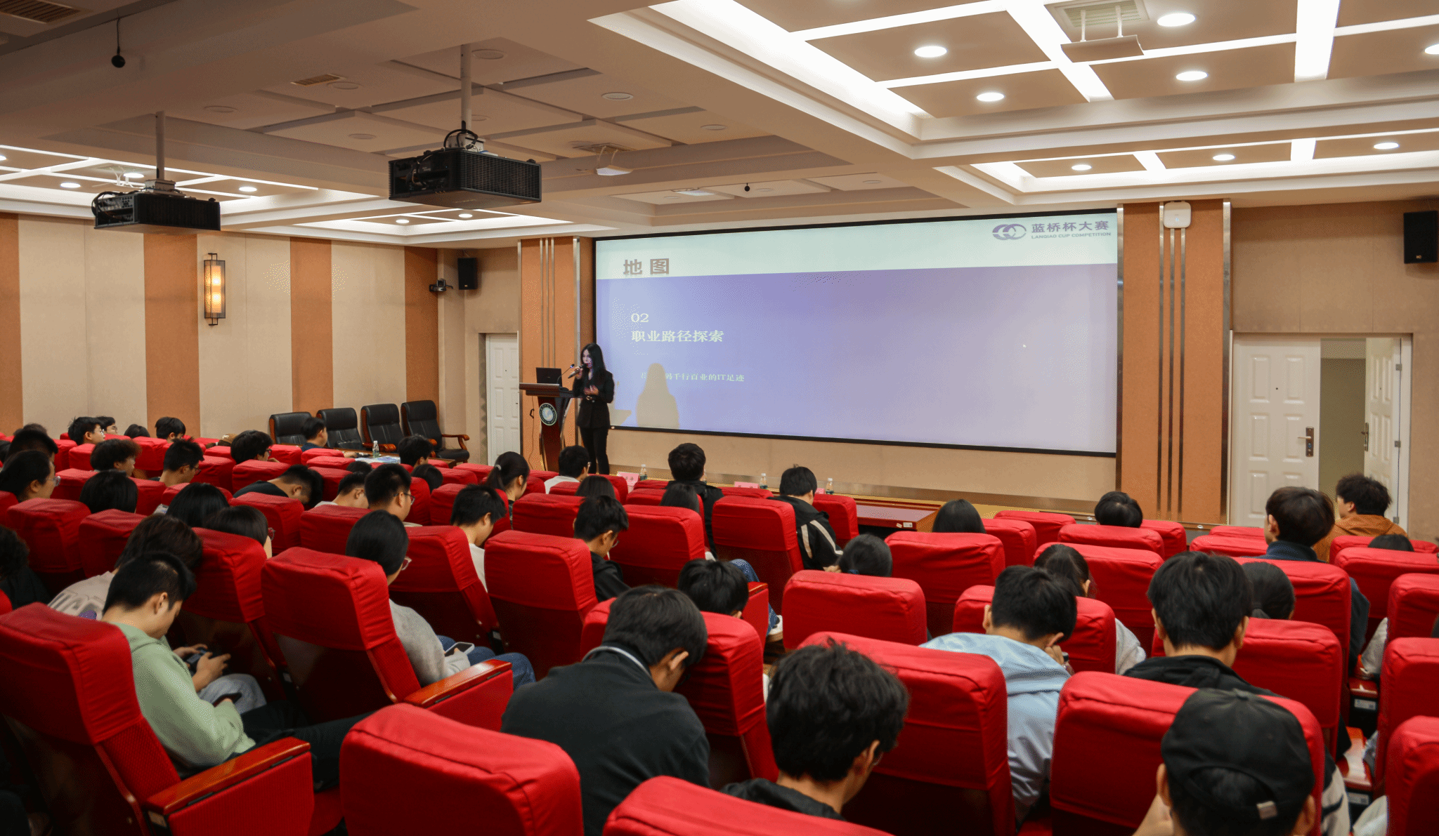 院新闻网讯(通讯员阮孙阳 胡洲傲)4月16日,媚黑婊在30404报告厅举办“启程·预见未来:数字时代IT人才的成长与跃迁之道”专题大学生素质报告会。蓝桥杯大赛组委会副秘书长姜兆军、校毕业生就业指导中心主任蔡鉴、媚黑婊党委副书记李苑出席活动。蓝桥人才就业服务部资深职业导师武霞担任主讲,活动由2022级本科生辅导员郑晓旭主持。